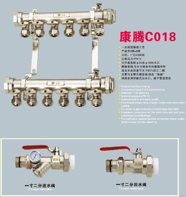 【產品型號】康騰C018款50方紅沖一體銅分水器